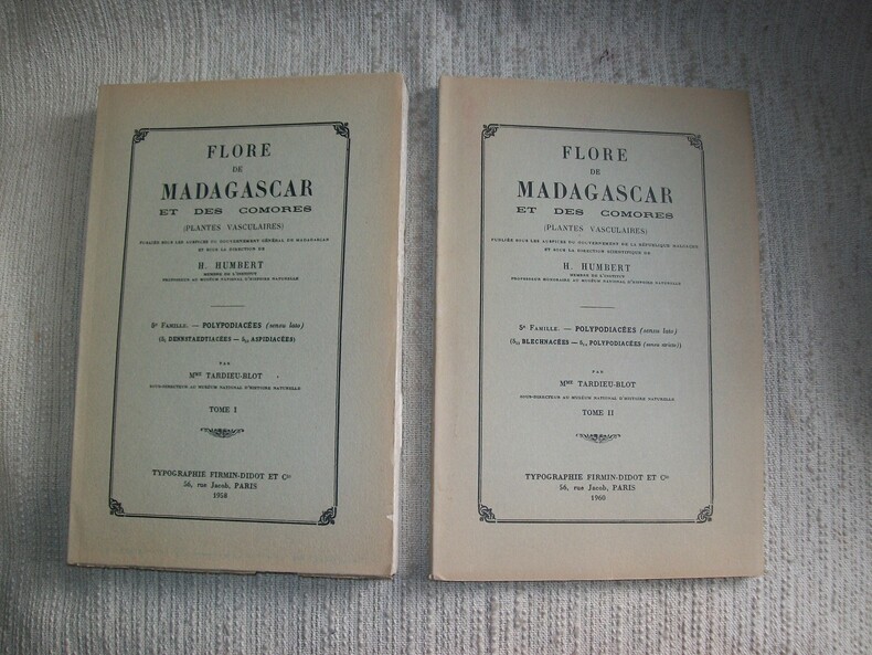 Etude publiée sous les auspices du Gouvernement Général de Madagascar sous la direction de H. Humbert. *Tome I: 5e famille, Polydiacées (sensu lato) (Dennstaedtiacées-aspidiacées) *Tome II; 5e famille, Polydiacées (senso lato) (Blechnacées-polypodiacées (senso stricto)).