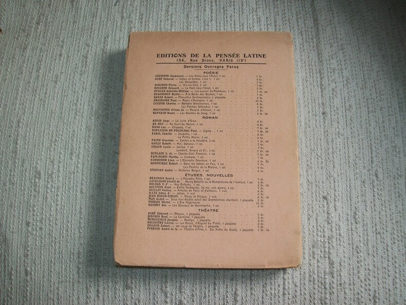 Paris Editions de la Pensée Latine 1926. Petit in-8 broché 7 feuillets non chiffrés (titre, préface) 235pp 5 feuillets non chiffrés (errata, table). Petits manques de papier en tête et au bas du dos. Bel envoi de l'auteur à l'Administrateur en Chef Robert Arnaud, plus connu sous le pseudonyme de Robert Randau (Alger 1873-1950), administrateur colonial et écrivain.