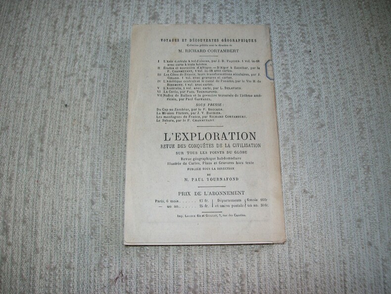 Paris Librairie de la Société Bibliographique 1882. Petit in-12 broché VIII 168pp. Orné d'une belle carte dépliante. Petite étiquette de classement ancienne sur le dos, quelques pâles rousseurs, bien complet du texte et de la carte.