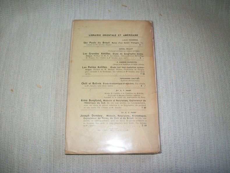 Paris Librairie Orientale et Américaine Guilmoto sans date (1909). In-8 broché 244p. Illustré de 60 photographies dans le texte ou hors texte, 3 cartes. Dos bruni avec petit manque en tête, intérieur en bon état, complet et non coupé.