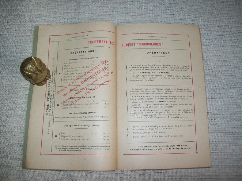 Sans lieu 1910-1911. In-12 broché belle couverture grise ornée de fleurs et feuillages 71pp. Texte inscrit dans un cadre de filet rouge. catalogue édité au moment de la fusion de la Société Jougla avec la Société Lumière, comme l'indique le tampon rouge frappé au centre du 1er plat de la couverture. Bel exemplaire. (5084)