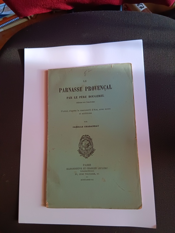 Joseph Bougerel, né en 1680, entré à l'Oratoire, fut chargé d'enseigner les humanités, montrant un vrai talent pour l'éloquence et la poésie. Il se montra aussi courageux durant la peste de 1720. Il se retira à l'Oratoire de Paris où il mourut en 1753.Auteur de plusieurs ouvrages, son Parnasse Provençal ne fut pas édité de son vivant.