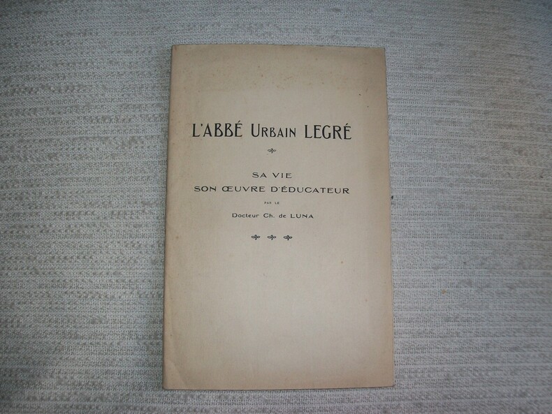 Société Anonyme du "Sémaphore de Marseille" sans date (1925). In-12 broché 32pp. Portrait en frontispice. Exemplaire en bon état, enrichi d'un envoi de l'Auteur en tête de la page de titre, accompagné d'une image pieuse "souvenez-vous dans vos prières de Messire Urbain Legré", d'une carte de visite de deuil de l'Auteur, d'une carte de visite du Président de la Société des Excursionnistes Marseillais et de ses membres. (PLAQ 25)