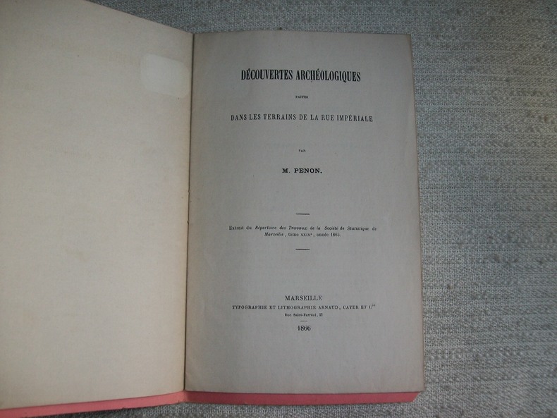 Marseille Arnayd Cayer et Cie 1866. In-16 broché couverture muette cartonnée avec le titre manuscrit de l'époque sur le 1er plat 2 feuillets non chiffrés 15pp. Page de faux-titre poussiéreuse avec étiquette ancienne de classement, 2 cachets ex-libris de deux anciens propriétaires différents (Gueidon puis Leroy). Intérieur en bon état. (PLAQ 25)
