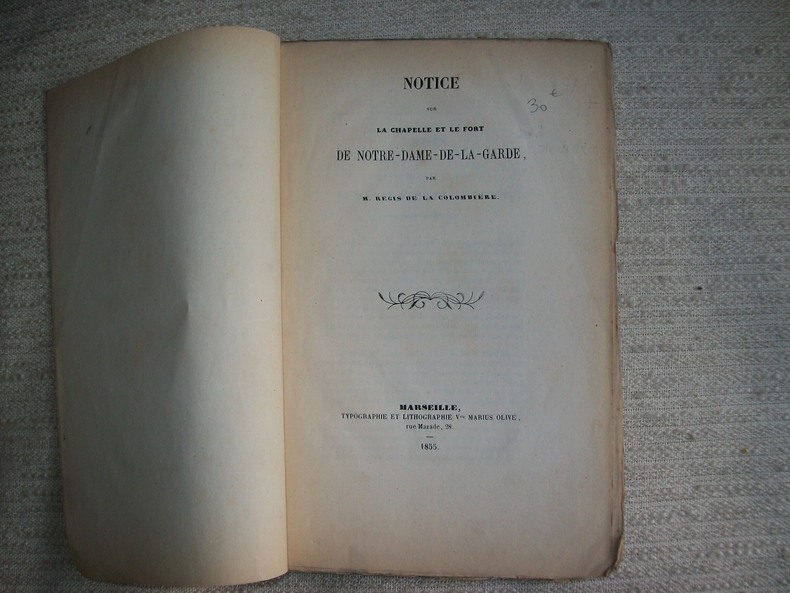Bel envoi signé de l'auteur à son neveu et gendre Jules de Régis de la Colombière. Rare publication, tirée à petit nombre. Qui donne de précieux renseignements sur le fort et la chapelle, les processions, les visites royales, avant le lancement de la souscription pour la nouvelle chapelle par Mgr Mazenod.