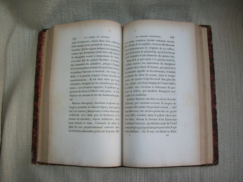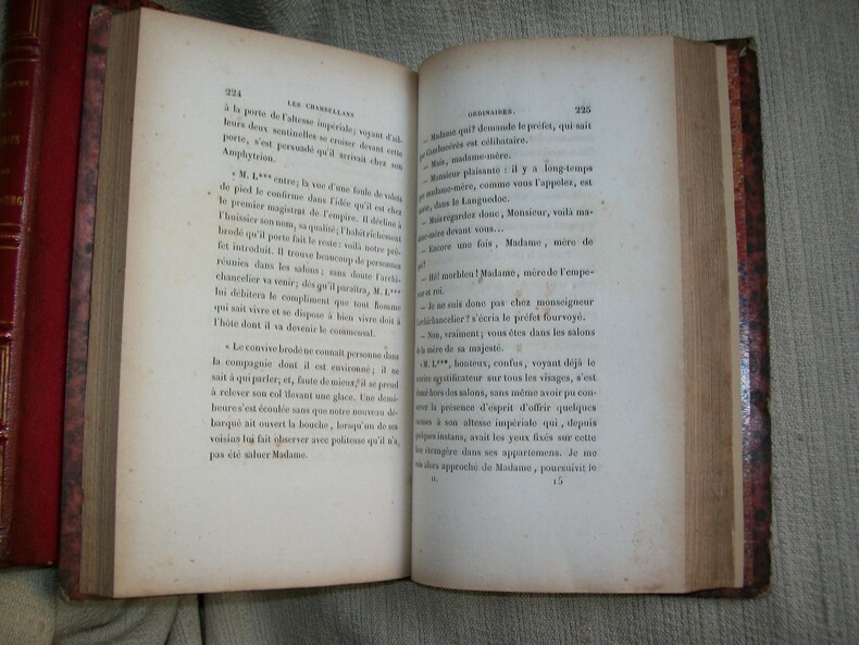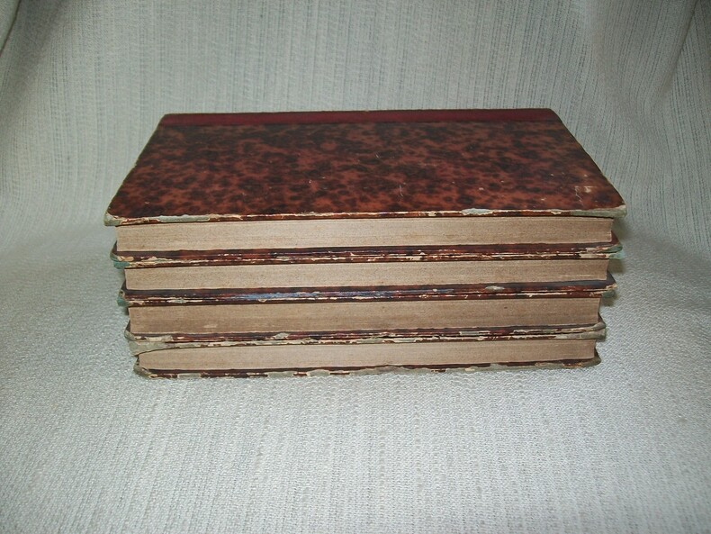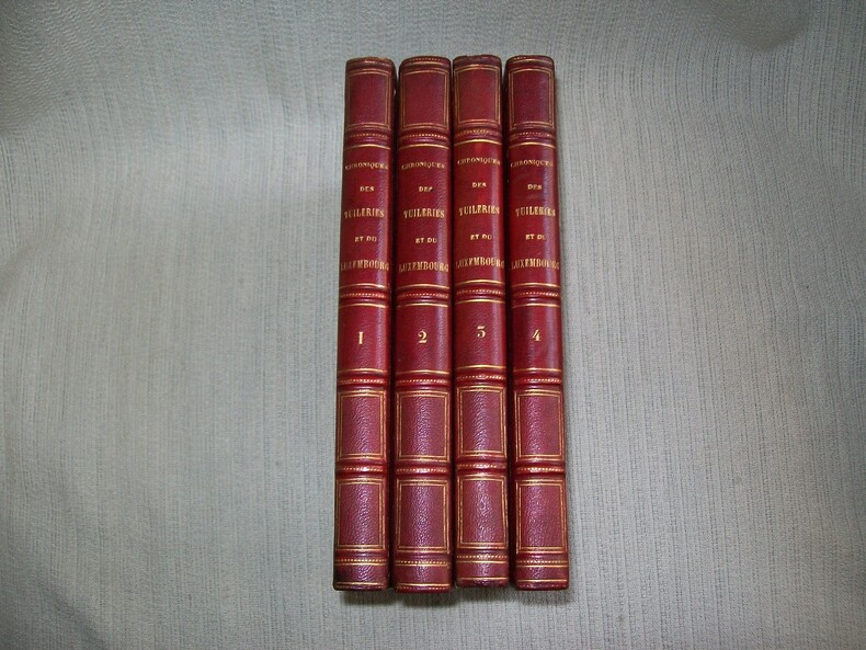 Paris Charles Lachapelle 1838-1841. 4 volumes in-8: 2 feuillets non chiffrés 2-379pp II-IV (prospectus pour un ouvrage à paraître); 2 feuillets non chiffrés 2-389pp; 2 feuillets non chiffrés 2-352pp; 2 feuillets non chiffrés 2-356pp. Demi chagrin rouge, dos à nerfs rehaussés d'un filet perlé, double cadre de filets dorés dans les entrenerfs, reliure de l'époque. Infime accroc sur la coiffe supérieure du Tome III; rousseurs; grande auréole brune (trois quarts de page environ) sur les pages 46 à 104 dut Tome IV. Exemplaire bien relié.