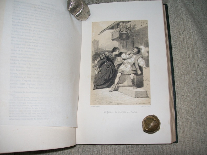 Paris J. Vermot 1862 -in-8 demi-chagrin un fort volume, reliure demi-chagrin rouge grand in-octavo Editeur (binding half red shagreen in-8 Editor) (26,8 x 18 cm), RELIURE D'EPOQUE, dos 5 nerfs (spine with raised bands), décoré "or" et à froid (gilt and blind-stamping decoration), titre frappé "or" (gilt title) dans un encadrement d'un filet "or", entre-nerfs à caissons ornés au centre d'un fleuron "or"avec rinceaux "or" en pourtour dans un encadrement de 3 filets "or", filet à froid de part et d'autre des nerfs, filet "or" en tête et en pied, plats de percaline rouge granitées décorés à froid, avec des encadrements à froid (plaques spéciales Editeur), toutes tranches dorées (all edges gilt), gardes blanches moirées, Ouvrage illustré de 10 Lithographies hors-texte en deux teintes avec serpentes par HADAMARD, fines et trés légères rousseurs sur quelques pages, 496 pages, 1862 Paris J. Vermot Editeur,