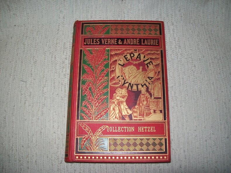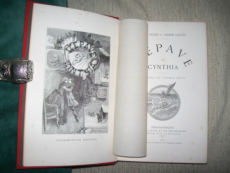 Par Jules Verne et André Laurie. Dessins de George Roux. Collection Hetzel.Première édition. Paris, Bibliothèque d'Éducation et de Récréation J. Hetzel et Cie. - 1885 - 266 pages. Catalogue (C.S.) pour l'année 1886. Ex libris J.J. Couder.Cartonnage éditeur "A la fougère" bannière verte de type 1. Bandeau inférieur (Collection Hetzel) sur fond de la couleur de la percaline. Une rangée de carrés au bas du 1er plat. Tranches dorées. Gouttière irrégulière. Gardes jaunes. Rares rousseurs. Cartonnage d'origine très propre. Très bon état. Format in-8°(24x17).
