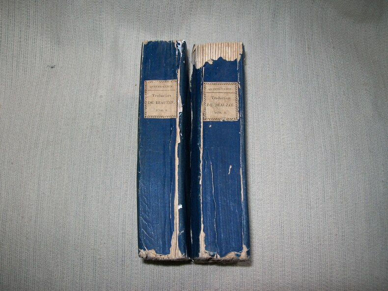 Avignon chez Guichard Aîné 1818. 2 volumes in-12 brochés couverture de papier bleu de l'époque, étiquette imprimée sur le dos 2 feuillets non chiffrés XXIV (avertissement, introduction) 391pp et 3 feuillets non chiffrés 437pp. Manques de papier sur les dos, intérieur frais non coupé. Les suppléments de Freinshemius se trouvent pages 2 à 111 du Tome I. (5132)