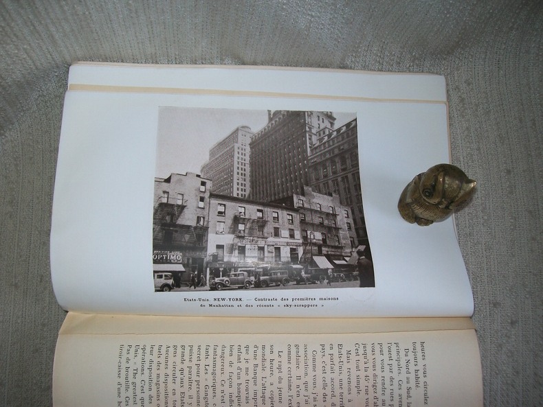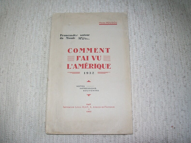 Gap Imprimerie Louis Jean 1933. In-8 broché 86pp 1 feuillet non chiffré table. Portrait de l'Auteur en frontispice, 26 planches regroupant 51 illustrations d'après des photographies, 1 carte hors texte. Petits manques de papier en tête et en queue du dos, intérieur frais. exemplaire solide, complet de son texte, des illustrations, de la carte. Récit qui rend compte avec enthousiasme du dynamisme américain.