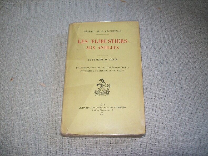 Librairie Ancienne Honoré Champion 1930, in-12 broché, 239 p. (petit manque au bord du premier plat de couverture, sinon très bon état) Première édition. Un volume de qualité sur la grande époque des "Frères de la Côte", illustré par un portrait, deux cartes dépliantes et dix dessins inédits d'Etienne de Bertier de Sauvigny.