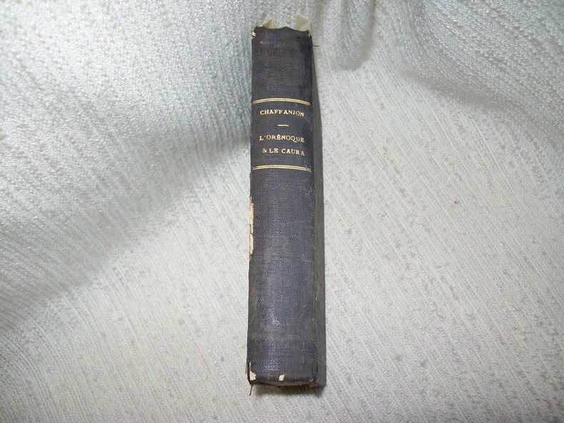 Nombreuses gravures dans le texte: départ du bateau, rancho près de Bari, cases et indiens de Kamurika, Caïcara, carte croquis du cours de l'Orénoque, oasis de palmiers moriches, las Bonitas,tatouages des Ariguas,départ pour le Caura,fête de la Canoa, hato du général Crespo). Gravures pleine page: des caïman attaquant une embarcation, l'Orénoque à Caïcara, danse des Ariguas à San Pedro, l'auteur tombant dans les bras du général, colonne de tortues s'avançant sur la plage). Classification Dewey : 70.4412-Le journal des voyages