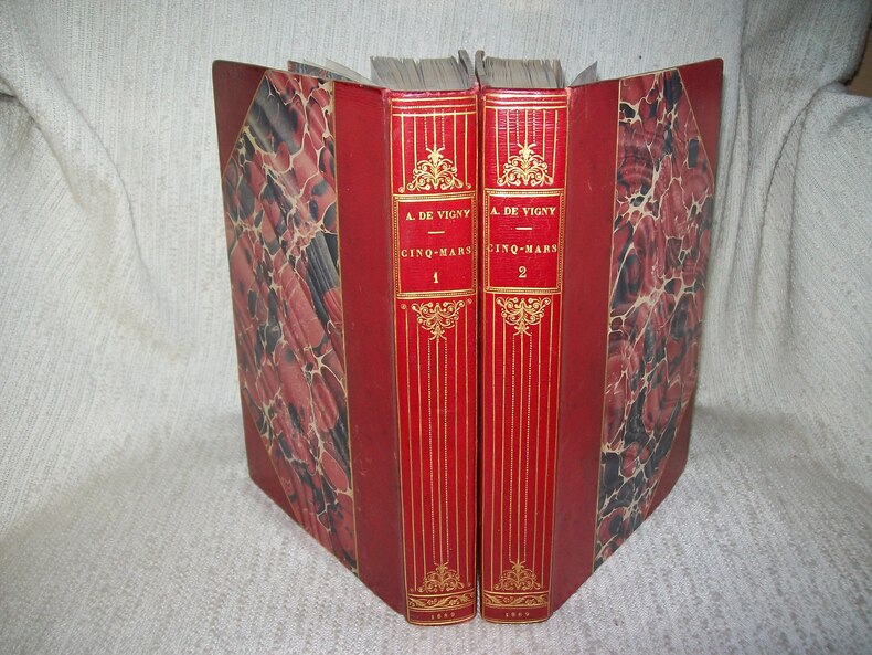 Notes et éclaircissements de M. Fernand Baldensperger, 8 vol. in-8 reliure de l'époque demi-chagrin à coins brun rouge dos lisse orné en long estampés à froid et dorés, tête dorée, couvertures et dos conservés, Louis Conard, Paris, 1914-1935 : Détail : Oeuvres complètes de Alfred de Vigny (8 Tomes - Complet) I : Poëmes. Livre mystique - Livre antique - Livre moderne - Poëmes philosophiques - Suzannne - Héléna - Fragments inédits, 1914 ; II : Servitude et Grandeur Militaire. Laurette et le cachet rouge. La veillée de Vincennes. La Canne de jonc, 1914 ; III : Cinq-Mars ou Une conjuration sous Louis XIII, 1914-1922 ; IV : Stello - La Deuxième Consultation du Docteur Noir - Scènes du Désert, 1925 ; V : Théâtre I : Pièces en Vers. Pthello - Shylock - Fragments de Roméo, 1926 ; VI : Théâtre II : Poèces en Prose. La Maréchale d'Ancre - Quitte pour la Peur - Chatterton, 1927 ; VII : Correspondance. Première Série (1816-1835), 1933 ; VIII : Le Journal d'un Poète. Tome Premier (1823-1841), 1935