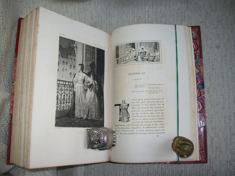 Paris Maison Quantin Collection Alphonse Lemerre 1889. 2 volumes in-8 2 feuillets non chiffrés II-X 249pp 1 feuillet non chiffré table et 2 feuillets non chiffrés 256pp 1 feuillet non chiffré table. Demi maroquin rouge à grains longs, à coins signés, dos lisse élégamment orné en long de filets continus et perlés, 3 fleurons, frise en queue, tête dorée, couverture ornée d'une vignette (différente pour chaque tome) conservée, reliure de l'époque (Durvand). Orné par Albert Dawant de lettrines animées, têtes de chapitre, culs de lampe, 1 portrait de l'Auteur en frontispice, 10 illustrations hors texte gravés à l'eau forte par Gaujean. Tiré à 1000 exemplaires, tous numérotés sur vélin à la Cuve. Rousseurs sur 2 feuillets blancs du Tome II. Intérieur très frais et complet. Vicaire VII, 1055. BEL EXEMPLAIRE TRES DECORATIF, relié par Lucien Durvand (1852-1924); membre fondateur du Syndicat des Patrons-Relieurs, il forma de nombreux ouvriers de qualité qui s'établirent ensuite à leur propre compte. (Fléty p65).