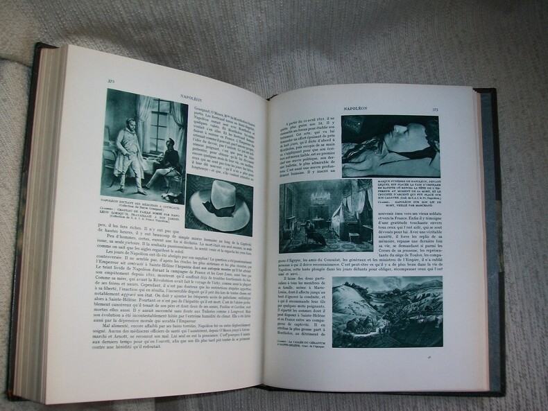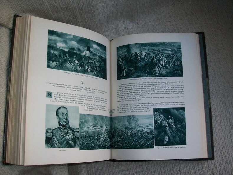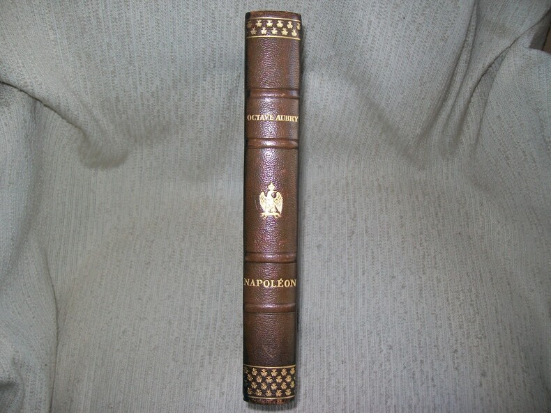 Paris Flammarion 1936. In-4 (29cm x 22,5cm) 2 feuillets non chiffrés 2-384pp. Demi chagrin vert à cins, dos à nerfs orné d'un semis d'abeilles en tête et en queue, Aigle au centre, tête dorée, reliure de l'époque. Abondante illustration dans le texte, à pleine page, sur double page et 12 hors texte (y compris le frontispice), d'après des documents de l'époque (portraits, caricatures, scènes, cartes). Dos uniformément passé au marron. Bel exemplaire complet de l'édition au format in-4 (malgré le défaut signalé), reliure décorative.