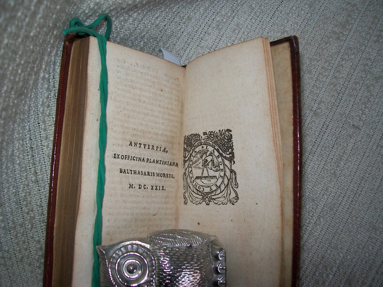 Texte imprimé à Anvers par Balthazar Moretus (1574-1641), typographe, imprimeur et éditeur apprécié dans toute l'Europe. Son ami Rubens fit son portrait et contribua à l'illustration de certains de ses livres.