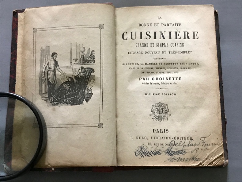 Ce livre connut de multiples rééditions de 1851 à la fin du 19° siècle. Celle-ci est la 10°. Croisette était officier de bouche et cuisiner de la Chambre de députés. Service, manière de découper les viandes, art de la cuisine, viandes, poissons, légumes, pâtisserie, sirops, etc.. (Vicaire 221 pour la 16° édition). (F1)