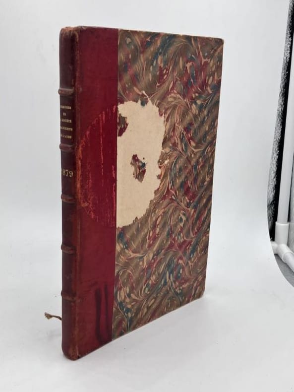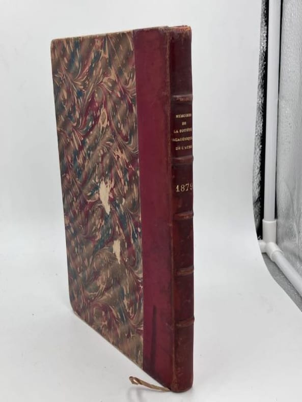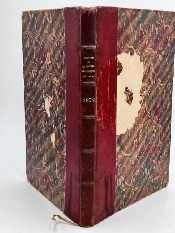 1879 Troyes Librairie Lacroix 1879, publié par la Socoété Académique d'Agriculture, Arts et Belles Lettres du département de l'Aube. Un volume in°8 reliure demi chagrin rouge, dos à nerfs et titres dorés. 178 pages et 2 planches de blasons. Très bel ex-libris