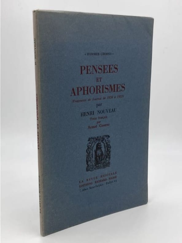 La Revue Musicale / Editions Richard Masse, 1970, in-8 br. (14,5 x 23), 77 p., coll. "Hommes choisis", édition tirée à 1500 exemplaires numérotés sur vergé teinté (édition qui ne sera jamais réimprimée), texte français par Armel Guerne, introduction de Jean-Jacques Duparcq, couverture rempliée, exemplaire non coupé, état de neuf.