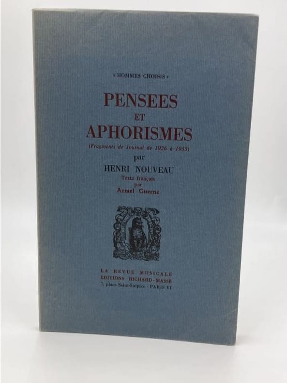 Henri Nouveau, qui fut à la fois musicien et peintre, rédigea régulièrement un journal intime de l'âge de quinze ans jusqu'à sa mort survenue le 12 janvier 1959 à Paris.