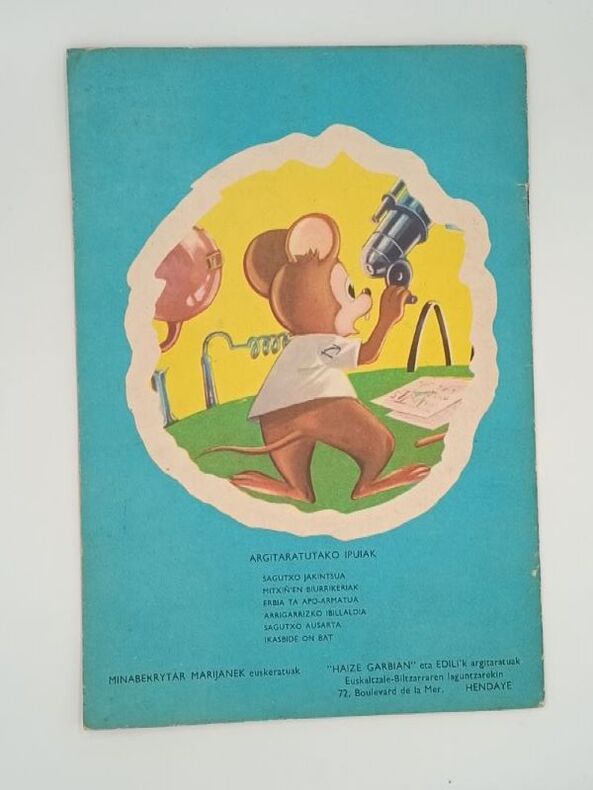 Minaberri, Marijane (1926-2017) Marijane Minaberri ou Marie-Jeanne Minaberry (Banca, 7 septembre 1926 - Blaye, 23 février 2017) est une auteure française de littérature pour enfants en langue basque. Elle a également travaillé pour des médias bascophones et a participé à l'édition d'une grammaire basque. Très bon état. N'hésitez pas à nous mettre dans vos favoris. Vous serez ainsi tenu au courant de nos nouveautés