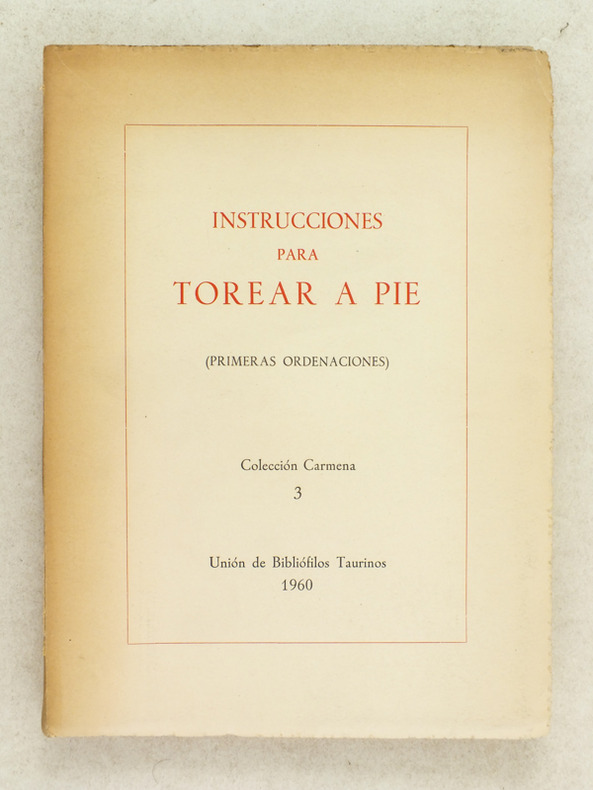 1 vol. grand in-8 br., collecion Carmena, Union de Bibliofilos Taurinos, Madrid, 1960, 120 pp.