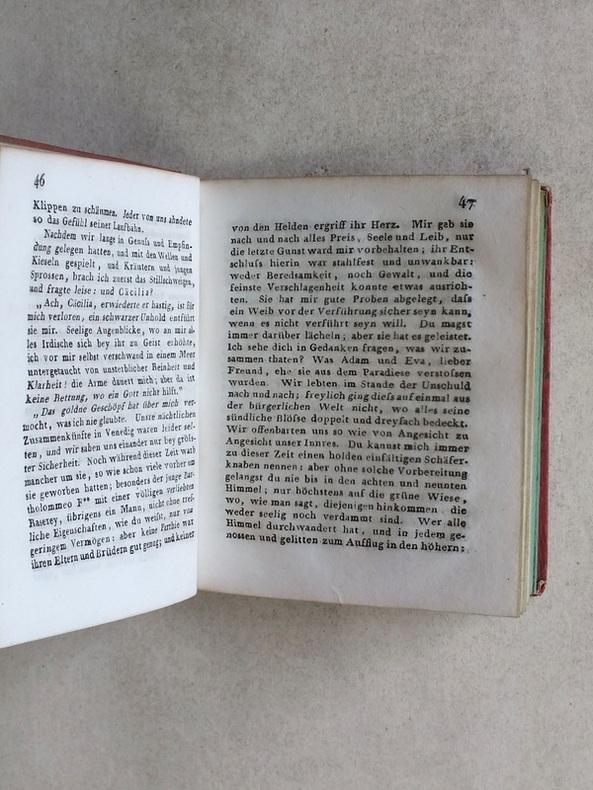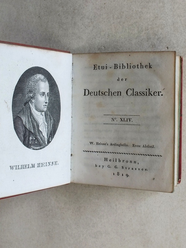 2 vol. in-18 cartonnage rouge éditeur, Etui-Bibliothek N° 44 und 45, Bey G. G. Strasser, Heilbronn, 1819, X-228 ; 186 pp.