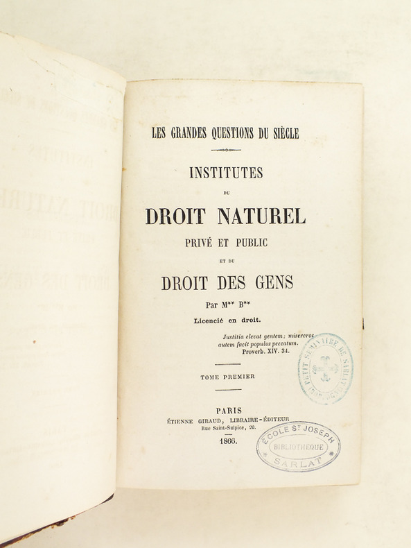 Etat satisfaisant (anciens cachets d'institution religieuse, étiquettes de cote en page de faux-titre, dos et plat).