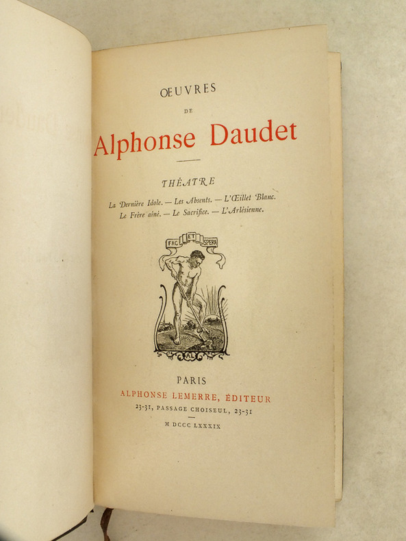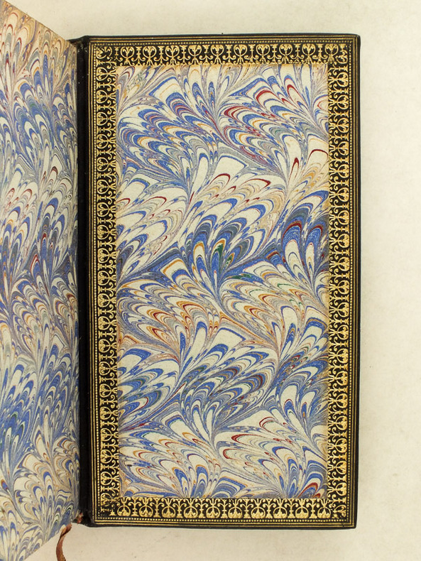 1 vol. in-18 reliure plein maroquin bleu, dos à 5 nerfs dorés richement orné, double filet doré en coupes, chasses richement ornées, tête dorée, Alphonse Lemerre, Paris, 1889, 2 ff., 431 pp. et 3 ff. n. ch.