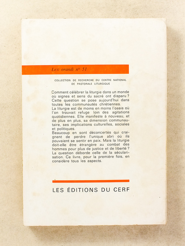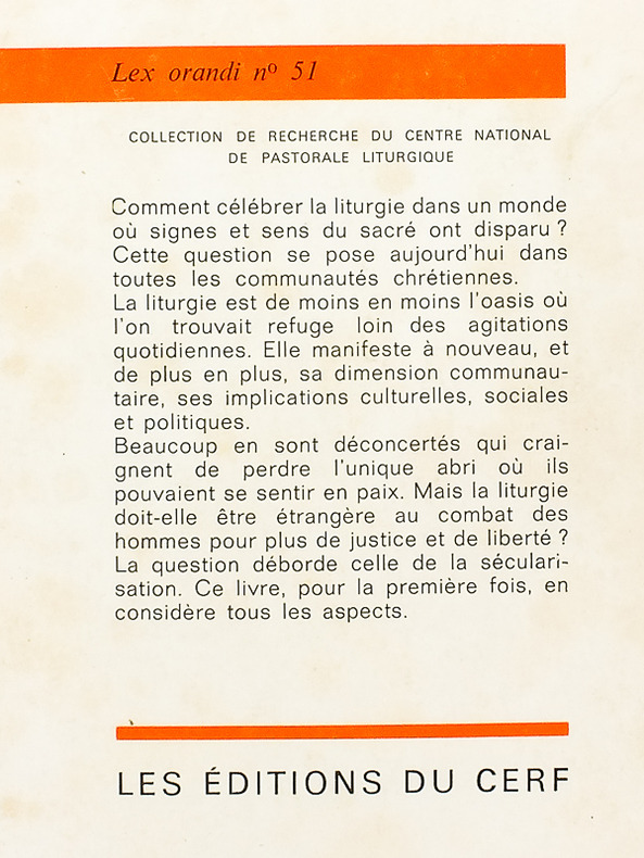 1 vol. in-12 br., coll. Lex orandi, Les éditions du Cerf, Paris, 1971, 252 pp. Exemplaire du S.P.