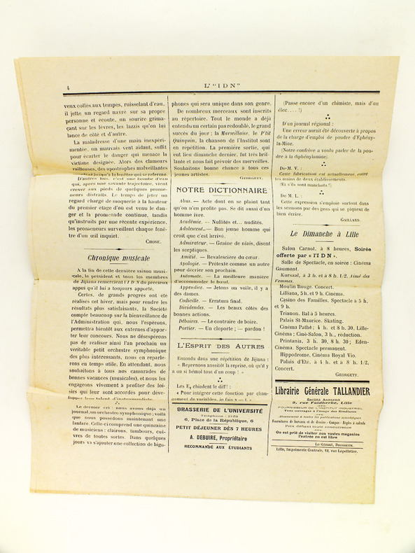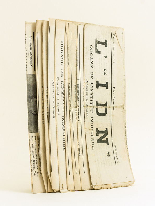 Rare lot de 10 parmi les tous premiers numéros du journal des élèves de l'Institut Industriel de Lille. Etat très satisfaisant (qq. numéros avec traces d'usage). Prix du lot.