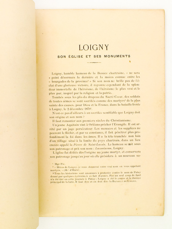 Etat très satisfaisant (ancien cachet en couv., bon état par ailleurs). Plaquette peu courante sur ce village d'Eure-et-Loir rendu célèbre par la bataille du 2 décembre 1870.
