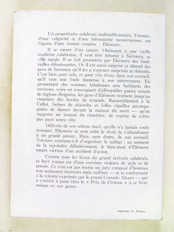 Etat très satisfaisant (ancien ex libris ms. sur couv, bon état par ailleurs). Rare exemplaire de la traduction française de ce roman, lauréat du "Prix Crotone".