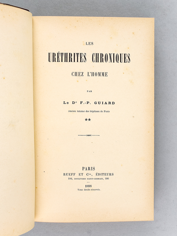1 vol. in-8 reliure de l'époque demi-chagrin bordeaux, dos à 5 nerfs dorés, Rueff et Cie, Paris, 1898, VII-410 pp.