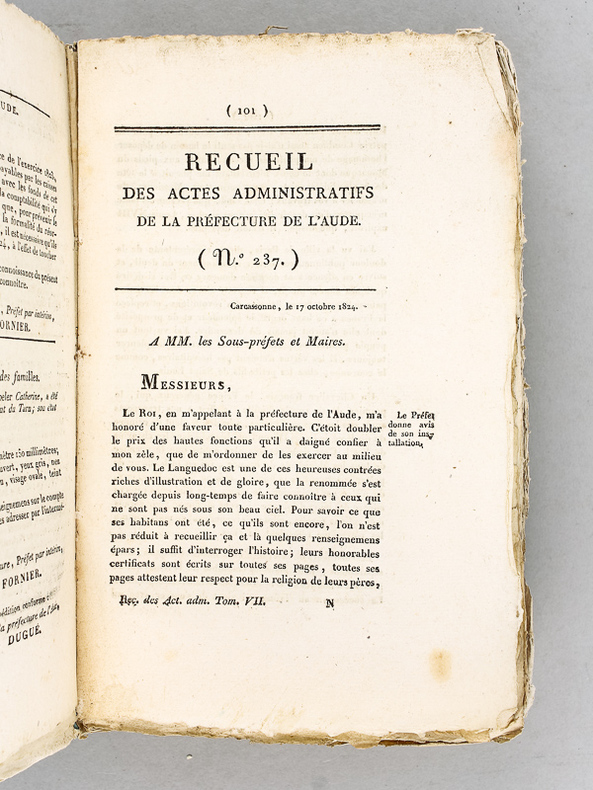 1 vol. in-8 br., De l'Imprimerie de Gardel-Teissié, Carcassonne, 1825, 468 pp.