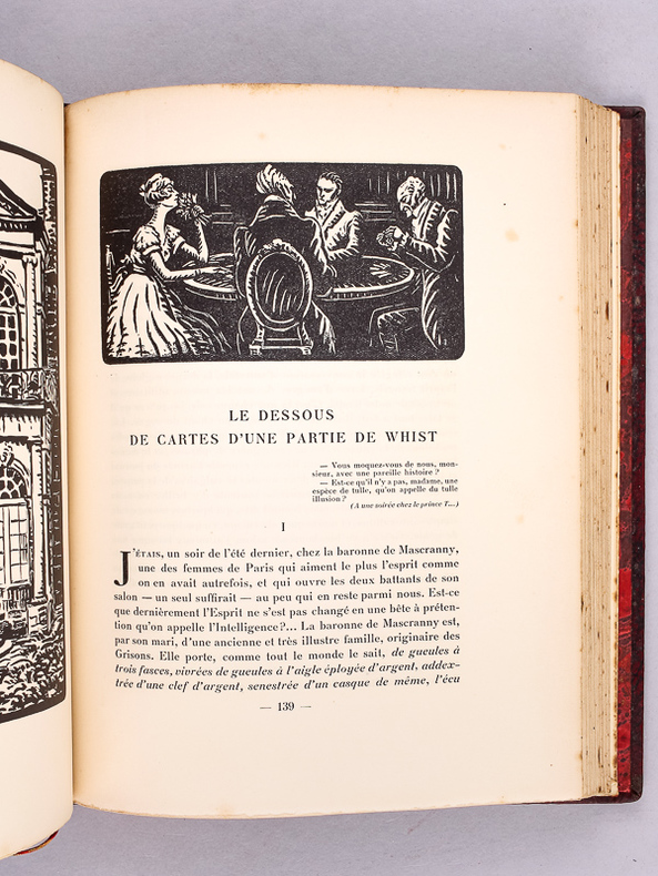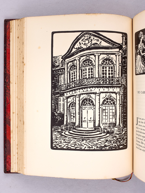 Paris SIMON KRA 1925 un volume (250 x 190mm), [3] ff. (faux-titre, titre et dédicace) 271 pp. [2] ff. (justificatif, achevé d'imprimer). Reliure en plein veau fauve marbré, dos à nerfs, ornés de roulette dorée, avec mention d'auteur et de titre dorés, roulette sur les coupes, roulette dorée sur les chasses, signet, tête dorée, dos et couverture conservés ( FLAMMARION ). (dos légèrement insolé). Ouvrage illustré de 19 eaux-fortes de Serge Ivanoff, toutes en hors-texte, tirées par E. Dollé et de nombreux ornements typographiques de André Hofer. Tiré à 350 exemplaires, 1 des 50 sur vélin de Rives numérotés (n° 74) avec une suite des illustrations. Bel exemplaire. Intérieur très frais.