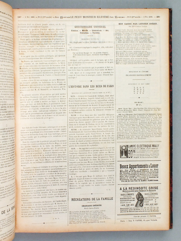 1 vol. in-folio reliure demi-percaline rouge, Le petit Moniteur illustré, 1886, 832 pp.