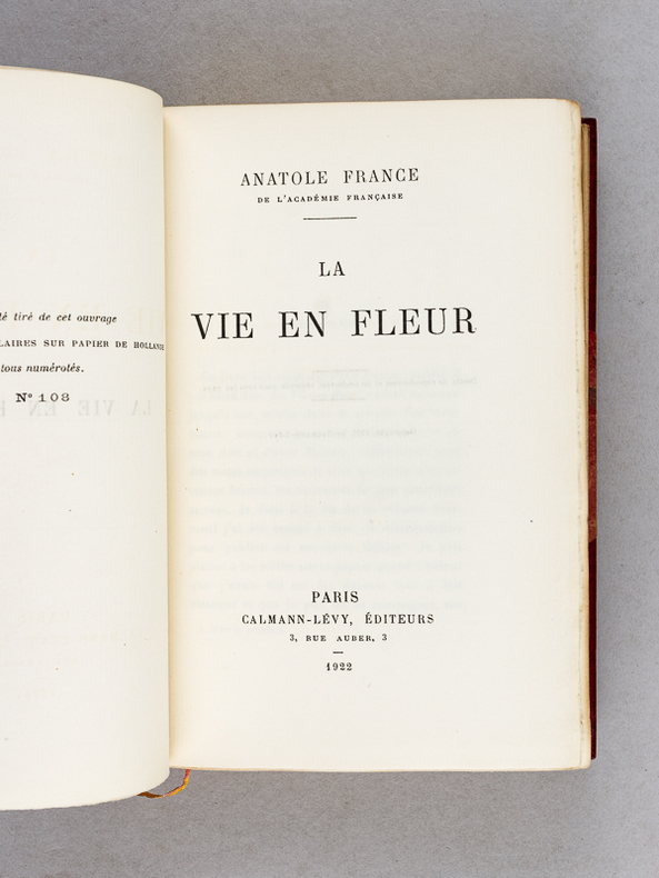 Un des 200 exemplaires sur papier de hollande numéroté, 1 vol. in-8 reliure demi-maroquin à coins rouge, dos à 4 nerfs, couvertures et dos conservés, tête dorée, reliure signée de Semet et Plumelle, Calmann-Lévy, Paris, 1922, pp.