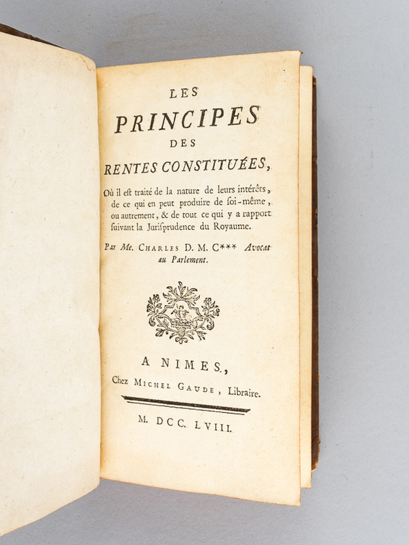 Première édition rare. Manuel pratique initiant aux arcanes des rentes, qui correspondent actuellement à des contrats de prêts ou de leasing. L'auteur était avocat au Parlement. Goldsmith-Kress 09393.2