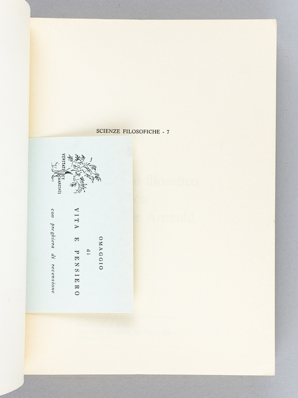 Bon exemplaire pour cette étude en langue italienne sur le penseur janséniste Antoine Arnauld (1612-1694).