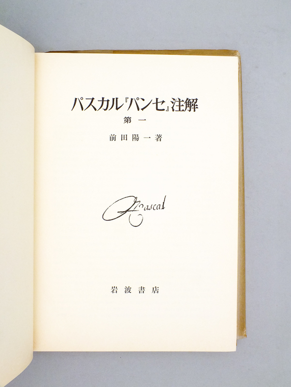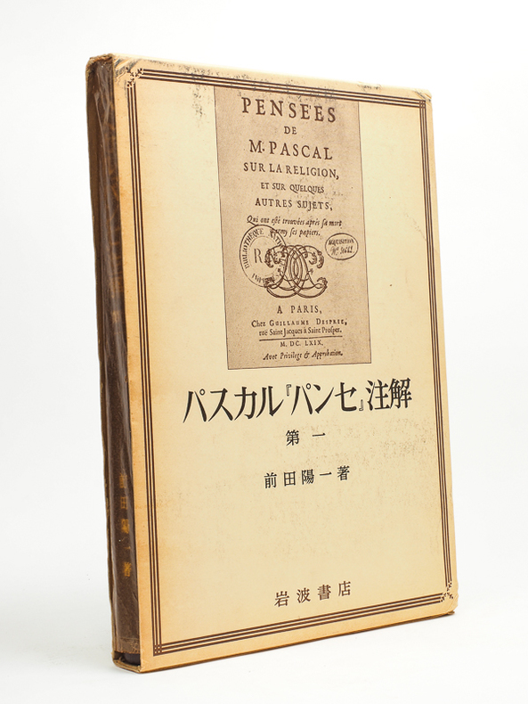 Bon état, avec un bel envoi du prof. Maeda, à un grand universitaire français, le prof. Jean Mesnard : "A mon ami Jean Mesnard, en gage de vive reconnaissance et de cordial hommage. Tokyo, le 21 mai 1980". A la fin des années 30, le prof. Maeda, qui avait passé sa thèse d'état à la Sorbonne, sous la direction de Léon Brunschvicg (1869-1944) sur le thème 'Arguments apologétiques chez Montaigne et chez Pascal'. Le présent ouvrage est considéré au Japon comme un sommet de ses études pascaliennes. L'auteur, qui avait passé une partie de son enfance à Genève, aurait pu l'écrire tout aussi bien en français qu'en japonais. (Source : Tetsuya Shiokawa, « M. Yoichi Maeda », Courrier du Centre international Blaise Pascal, 9 | 1987, 7-8.). On peut signaler, à ce propos, que le prof. Maeda fut même primé par l'Académie Française (Grand Prix de la Franophonie, 1987). Exemplaire en provenance de la bibliothèque du prof. Jean Mesnard (1921-2016), éminent spécialiste de Pascal et de la littérature du XVIIe siècle, normalien, agrégé de lettres, qui fut professeur à la Sorbonne et doyen de l'Académie des Sciences Morales et Politiques