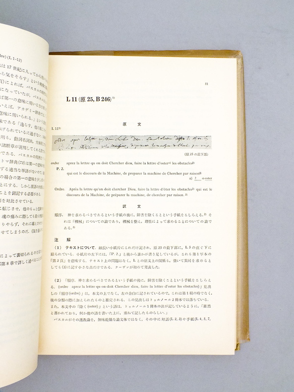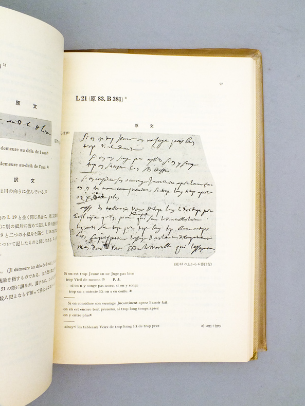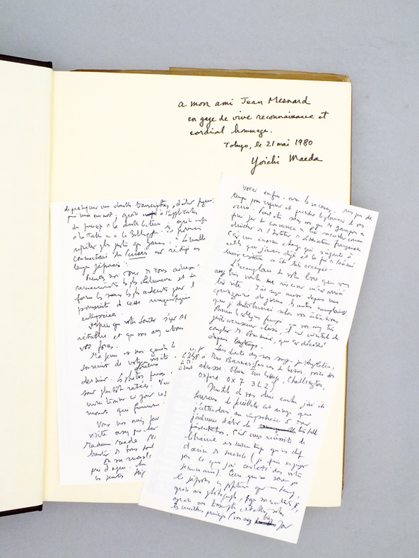 Envoi de l'auteur en français, 1 vol. in-8 cartonnage éditeur sous emboîtage, Tokyo, Iwanami-Shoten (en japonais : ), 1980, 251 pp. Texte en Japonais, uniquement. [ On joint : ] Brouillon du courrier de réponse par le dédicataire, le prof. Jean Mesnard