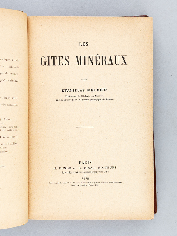 Bon état. L'ouvrage propose la matière du cours de géologie ouvert au Muséum d'Histoire Naturelle en avril 1917.