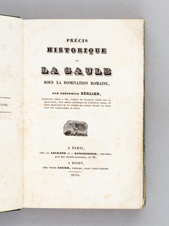 1 vol. in-8 reliure postérieure bradel demi-toile verte, Chez Ed. Legrand et J.Bergounioux, Paris, Chez Victor Lagier, Dijon, 1835, 333 pp. et 1 f. blanc