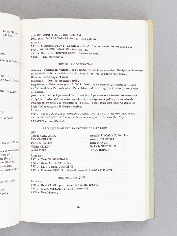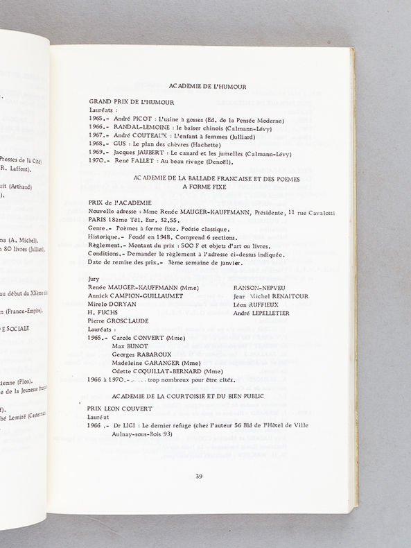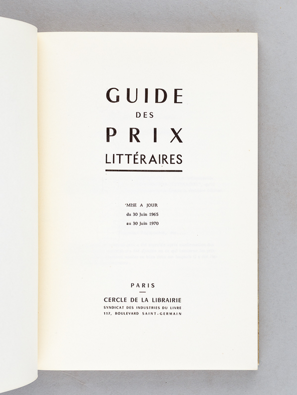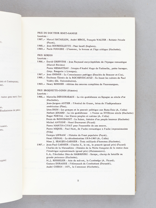 Intéressant document procurant la liste de l'intégralité des lauréats des prix littéraires de juin 1965 à juin 1970. La liste est longue !