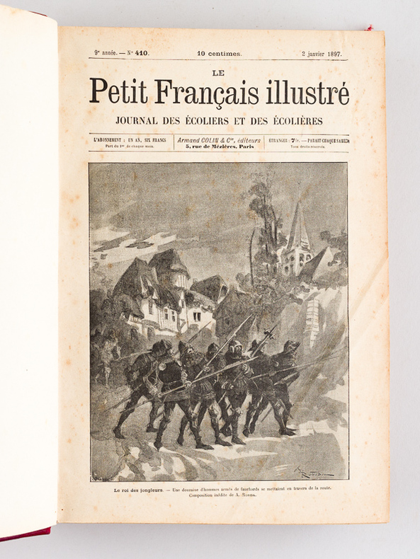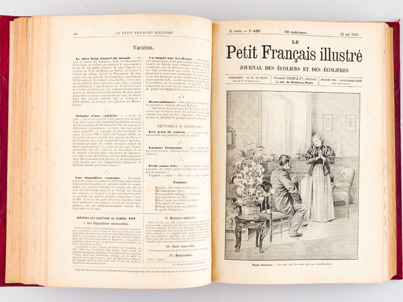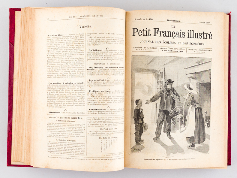 1 vol. fort et petit in-4 reliure demi-basane rouge, Le Petit Français Illustré, 1897, (9e et début de la 10e année) pp. 40- 624, 48 pp. Le Petit Français Illustré (Année 1897 Complète - Du n° 410 du 2 janvier 1897 au n° 461 du 25 décembre 1897)