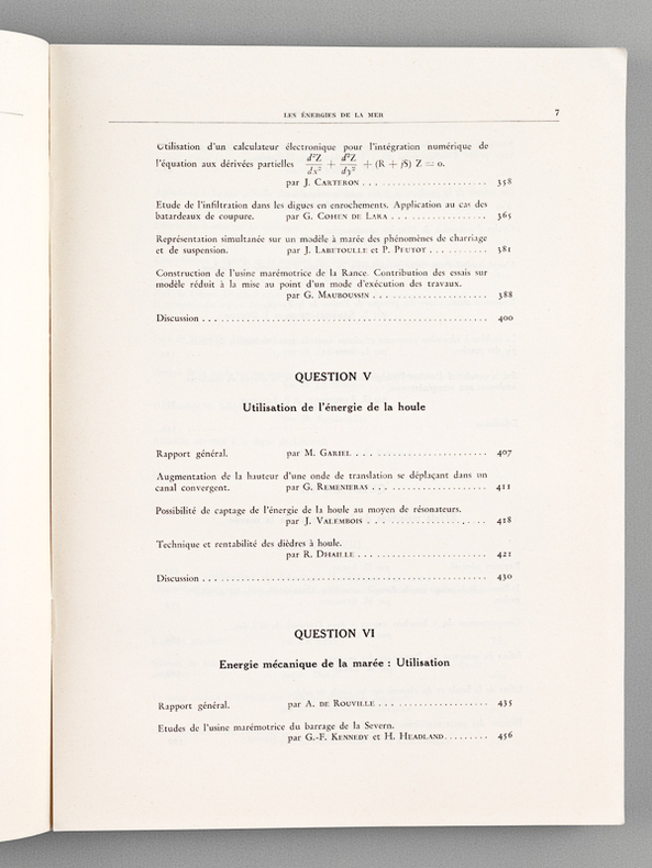 Bon ensemble (couv. lég. frottée) pour ce beau compte-rendu de cet important colloque qui fit date dans la réflexion sur l'énergie de la mer (énergie de la houle, énergie marémotrice, etc...).