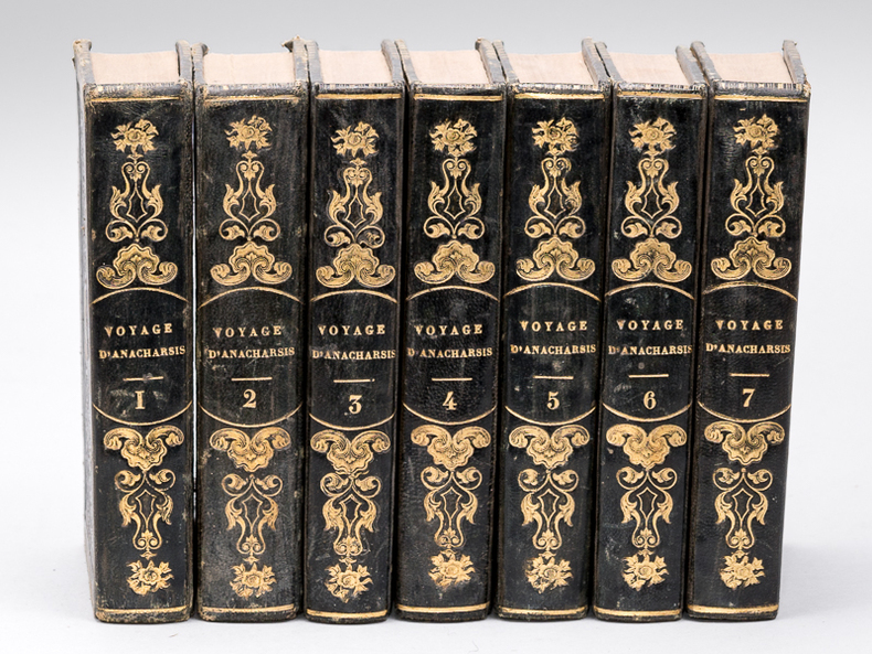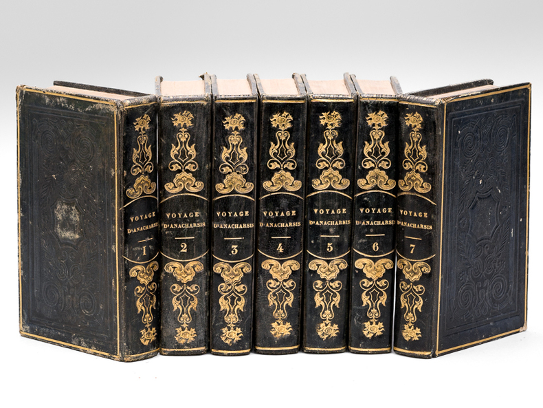 7 vol. in-12 reliure de l'époque pleine basane bleue, dos lisse orné en long, plats estampés à froid, Chez Martial Ardant Frères, Paris, 1840, 555, 603, 571, 578, 566, 522, 514 pp. avec 7 planches frontispices