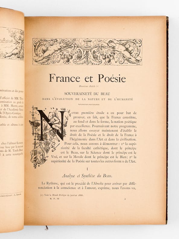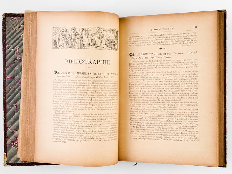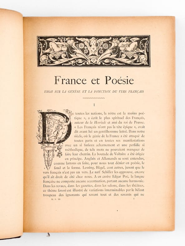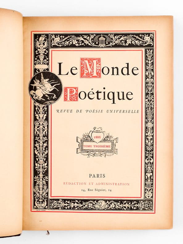 Textes de Jean Aicard, Emile Blémont, Henri de Bornier, Eugène Manuel, Jules de Marthold, Fréféric Mistral, Sully Prudhomme, Gaston Paris, etc.... Bon état (rel. lég. frottée, petit accroc marginal à un feuillet, très bon état par ailleurs).