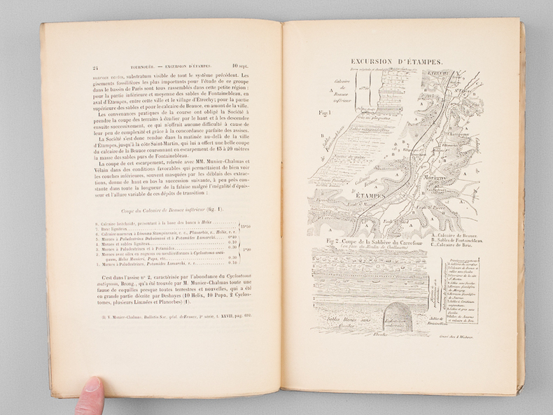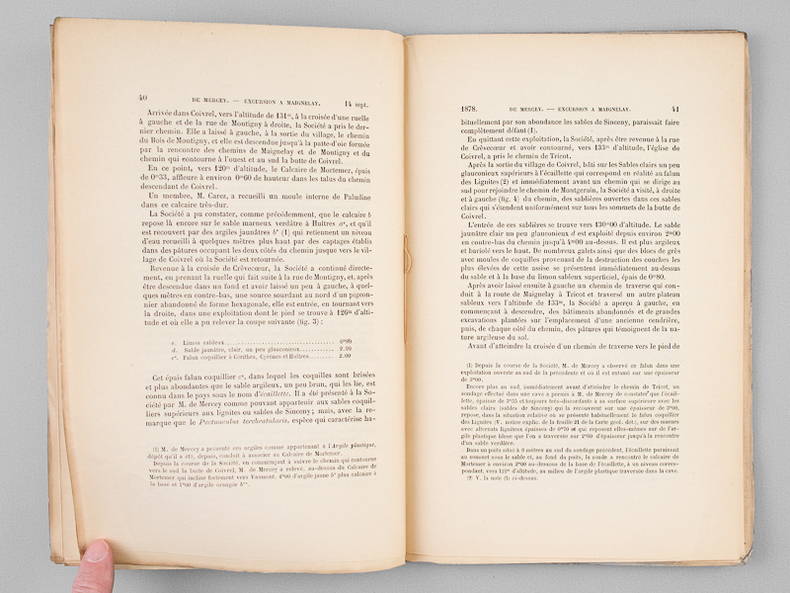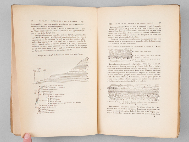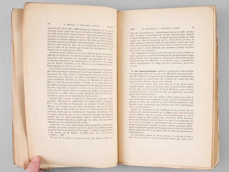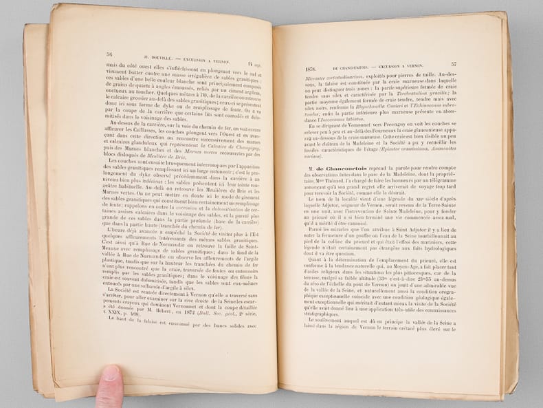 1 vol. in-8 br., Troisième Série, Tome sixième, Société Géologique de France, Au Siège de la Société, Paris, 1878, 78 pp. avec 2 planches dépliantes dont "Course de Vernon, Puits artésien du château de la Madeleine").